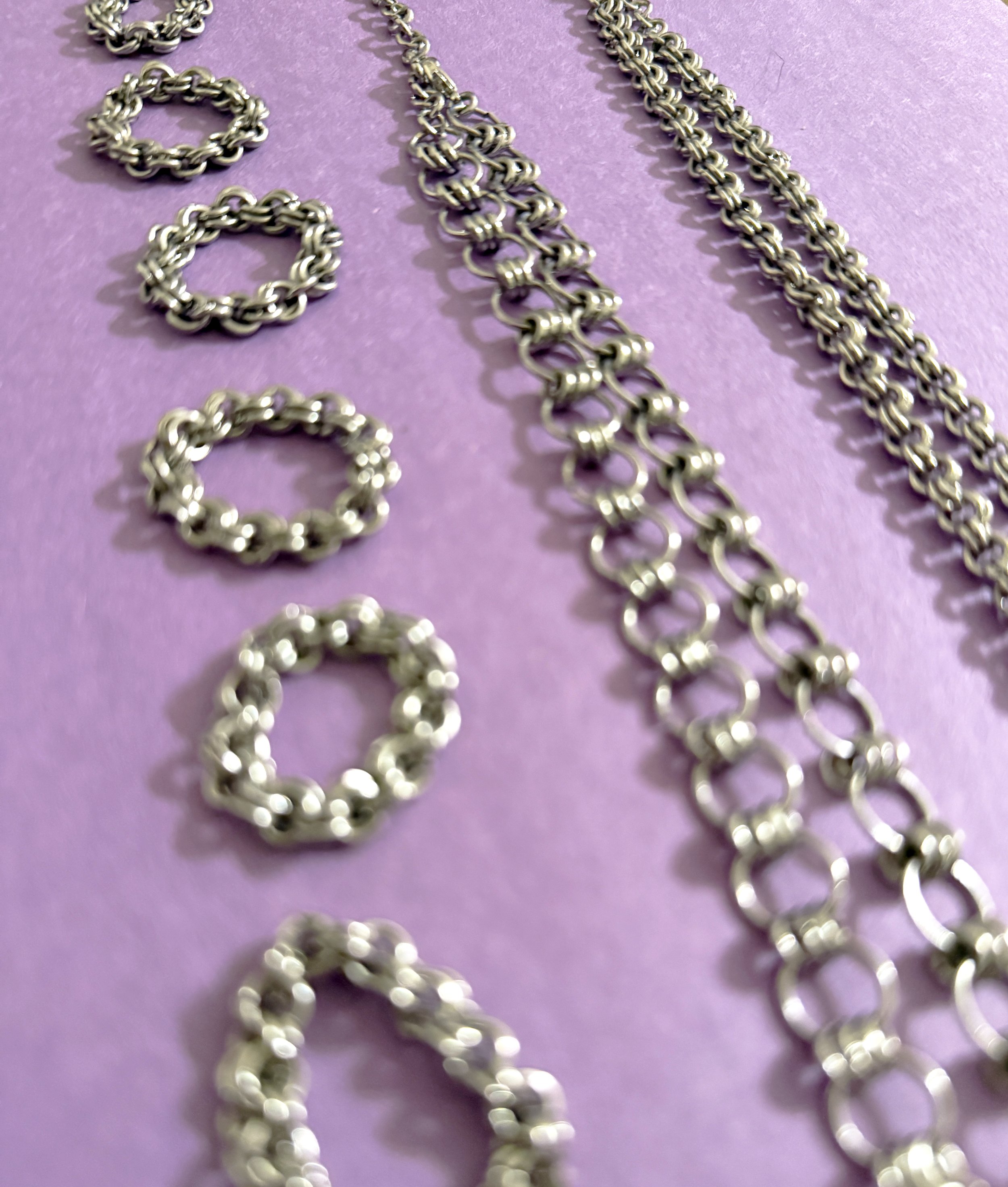 What materials do you use?Most pieces are made from stainless steel and glass beads, unless otherwise noted in the product description. Materials are thoughtfully sourced from a mix of suppliers and small creators to maintain quality and uniqueness.
